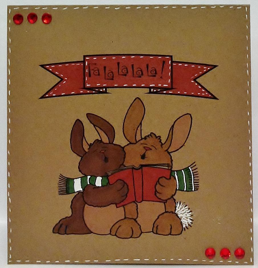 Crystal is showcasing Digi # 16403 Caroling Bunnies & Sentiment #17706 Fa La La
