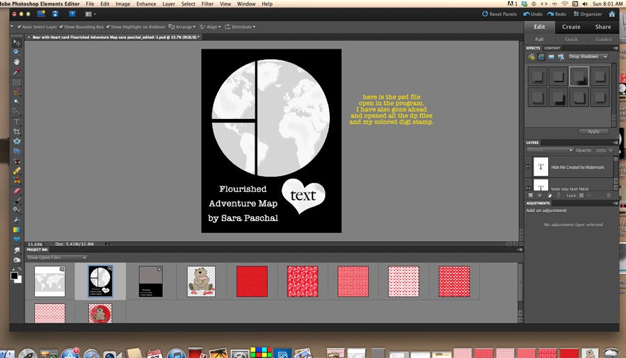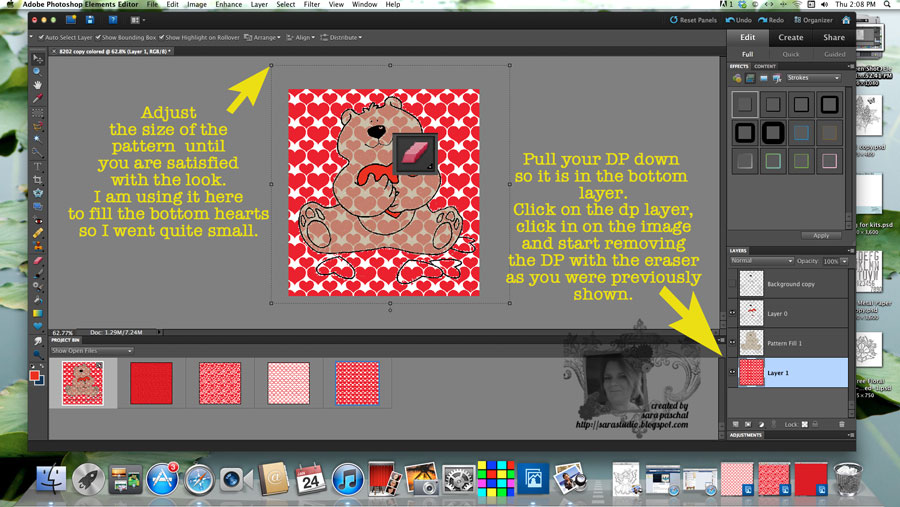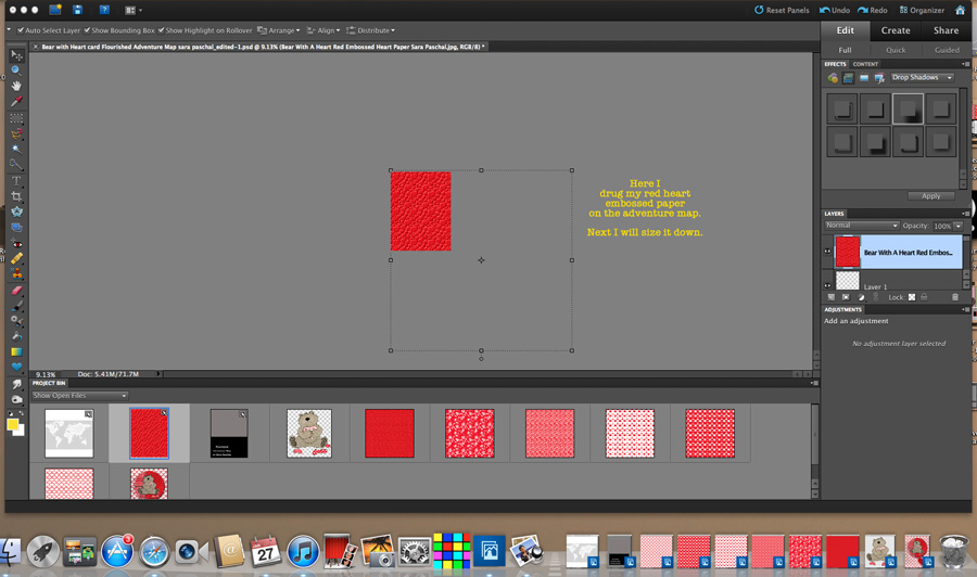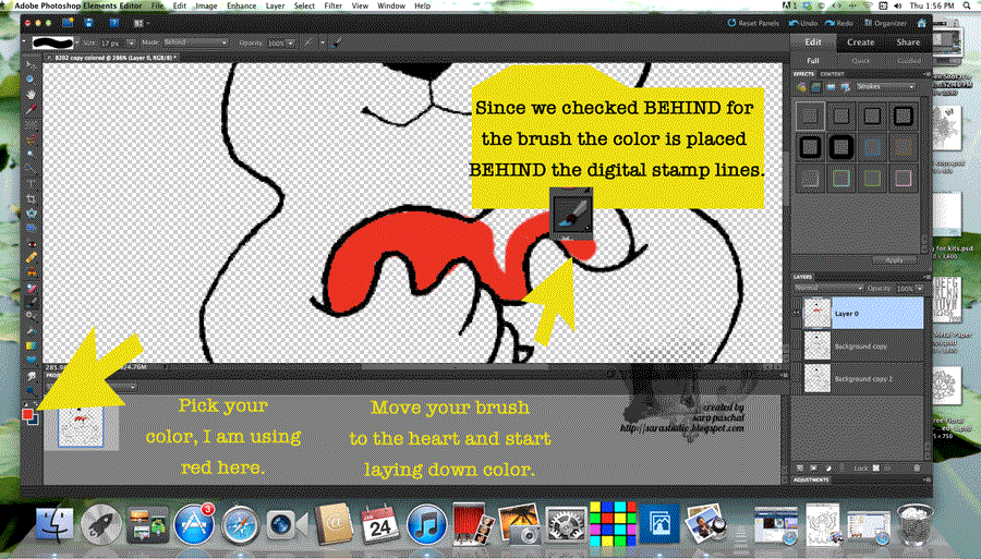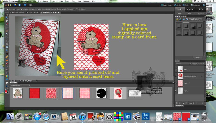 Step One: Open your digital stamp into your graphic program I use PSE10, make all the changes you desire. For mine I used a red color stylizer. In just a few seconds I had transformed the background image.