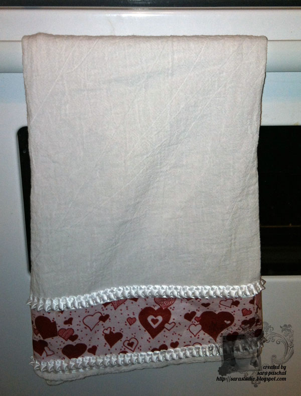 You can see below how I used the hem of the towel for positioning my iron on transfer.